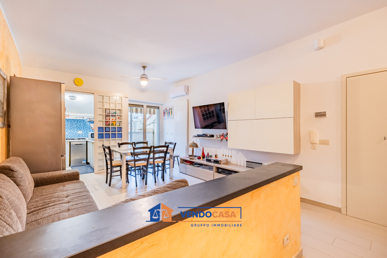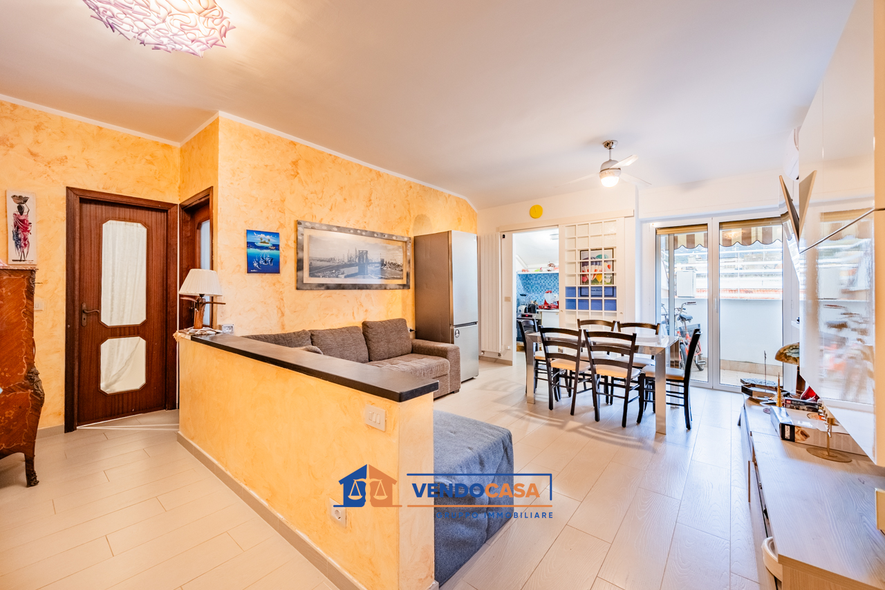 ALASSIO: Proponiamo in vendita luminoso appartamento in Via L. Pasteur ad Alassio, a pochi passi dal mare. L’immobile, ristrutturato nel 2019, è situato all’ultimo piano servito da ascensore all’interno di un condominio privo di barriere architettoniche, ideale per ogni esigenza di comfort e accessibilità. L’ingresso si apre su un accogliente soggiorno, con adiacente cucinotto separato. La zona notte comprende una camera da letto matrimoniale, una cameretta, e un bagno finestrato con box doccia. Completano la proprietà due terrazzini, perfetti per momenti di relax all’aperto, e un comodo ripostiglio interno all’appartamento. L’abitazione è dotata di riscaldamento autonomo con termosifoni e impianto di climatizzazione in ogni ambiente, garantendo comfort in tutte le stagioni. Soluzione ideale sia come prima casa che come casa vacanze, grazie alla posizione strategica vicino al mare e ai principali servizi. Possibilità di visionare altre soluzioni visitando il nostro sito. Per maggiori informazioni contatta il numero di telefono 3476804186 oppure 01821905771. Ci trovi in Corso Dante 184/186 17021 Alassio. Da oggi puoi seguirci anche su Facebook e Instagram sulla pagina Vendocasa Gruppo Immobiliare. La presente descrizione ha natura pubblicitaria, dunque non ha validità ai fini contrattuali, ne ha valore ai fini urbanistici, catastali e giuridici.