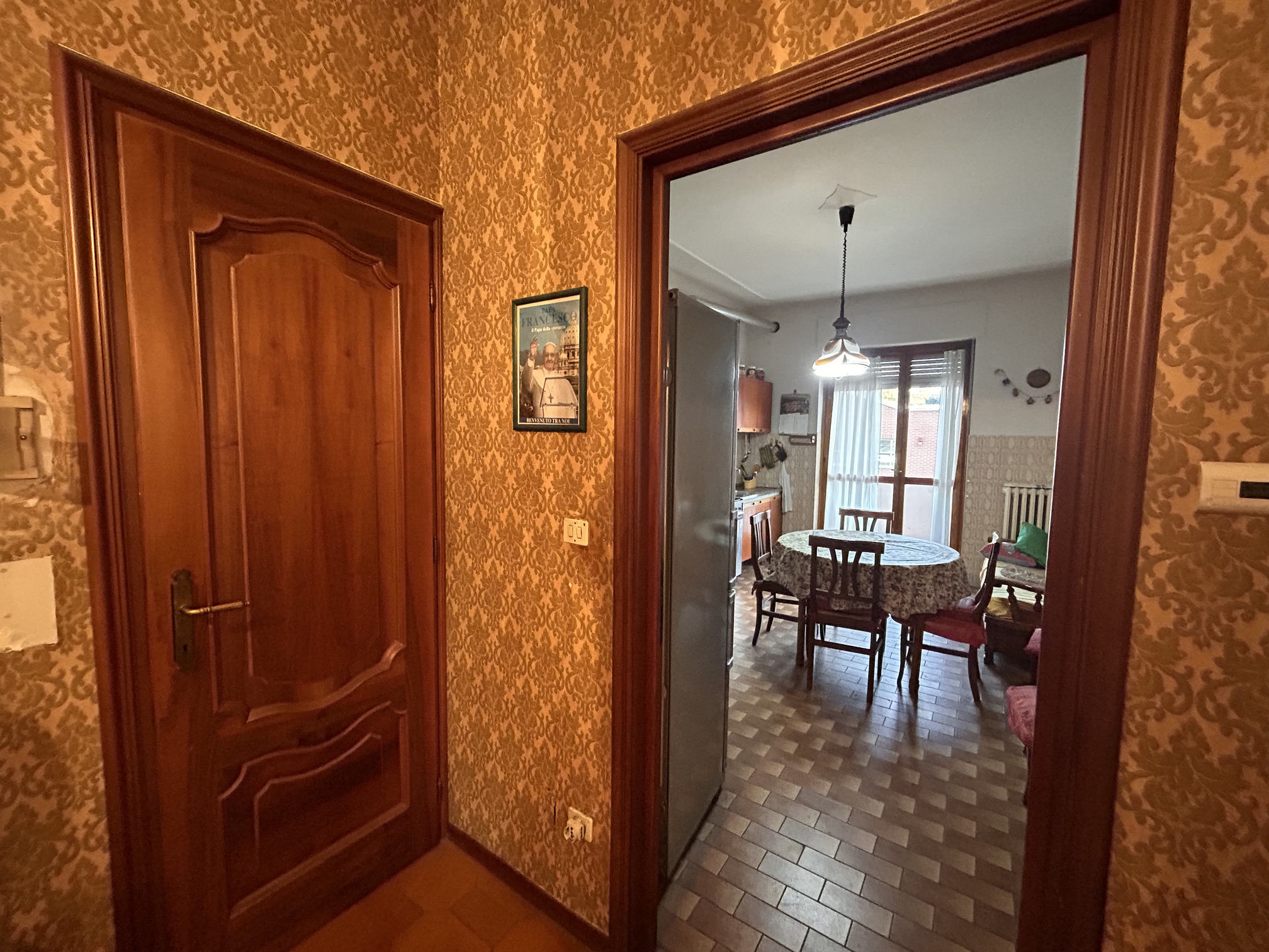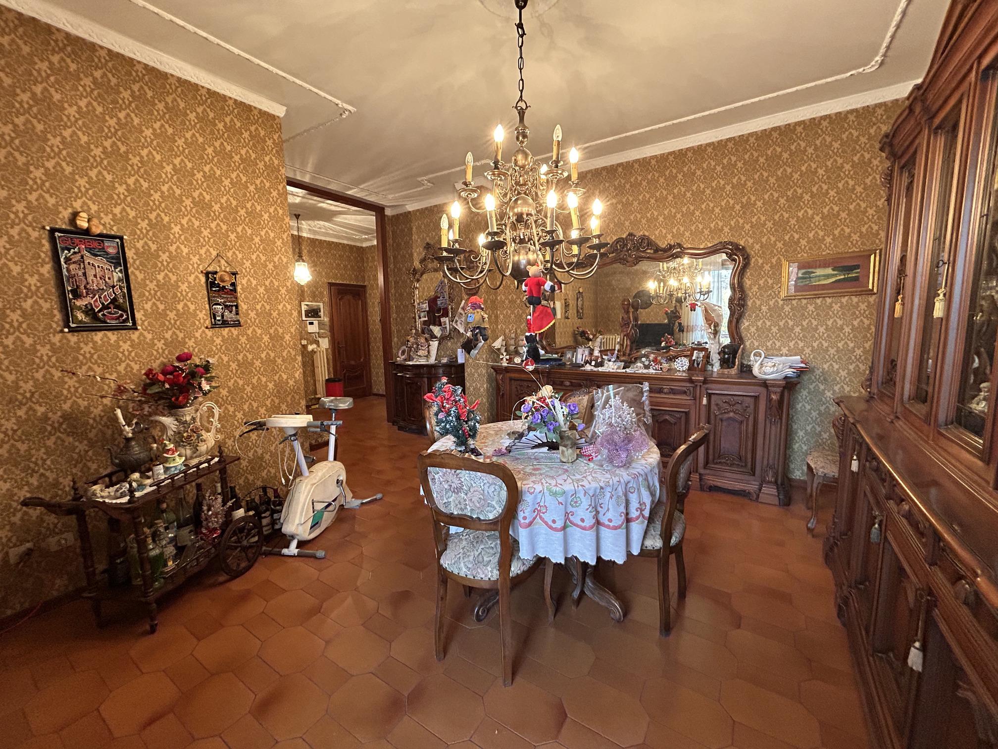 L’ingresso si apre su un luminoso soggiorno in stile retrò, caratterizzato da metrature generose e da un grande terrazzo con piacevole vista sul corso. Alla sinistra dell’entrata troviamo un comodo ripostiglio e una cucina abitabile con balconcino privato.