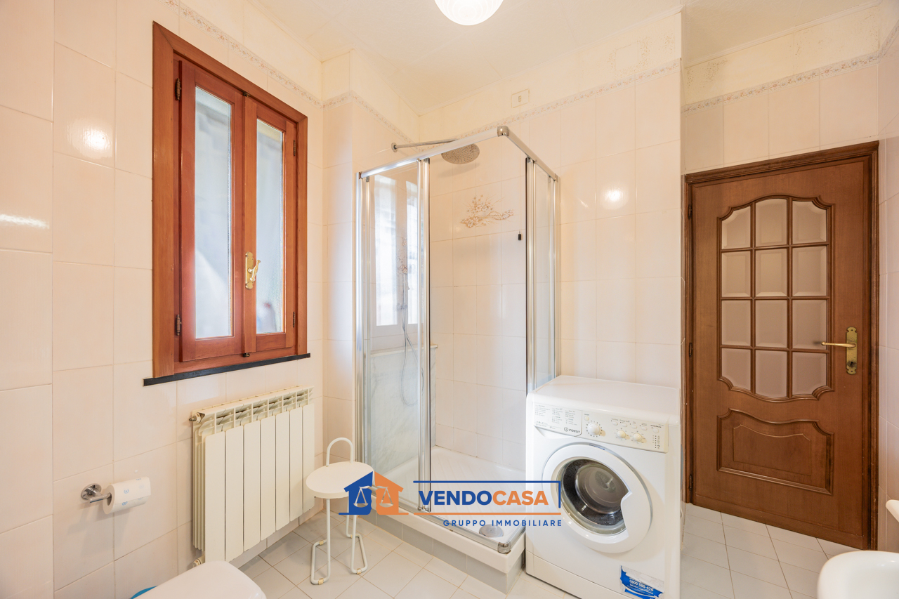 Il primo piano è composto da disimpegno, cucina abitabile con balconcino e ripostiglio, luminosa zona giorno con accesso al terrazzo, due camere matrimoniali, bagno in suite finestrato con box doccia, secondo bagno finestrato e ulteriore sgabuzzino.