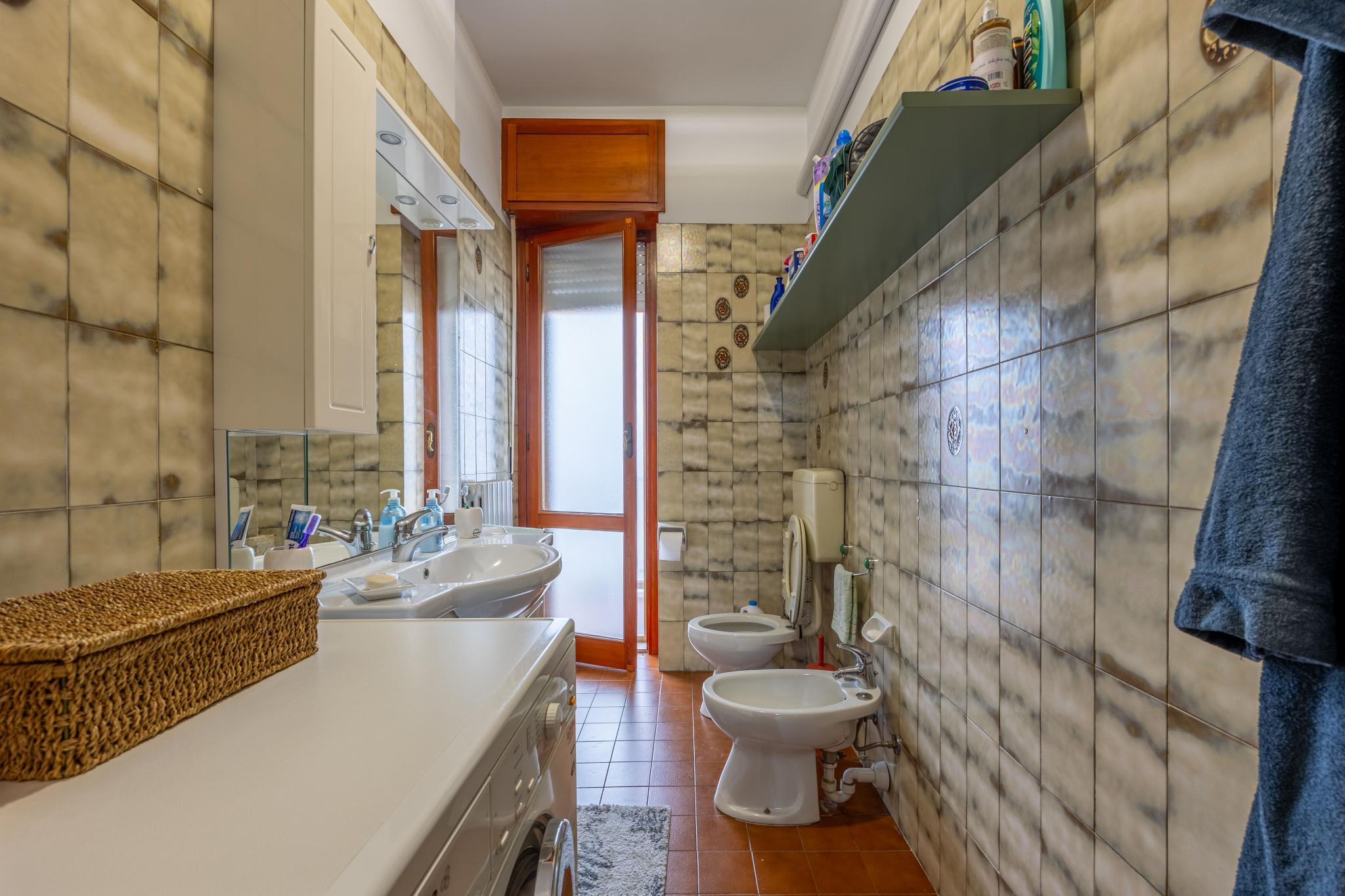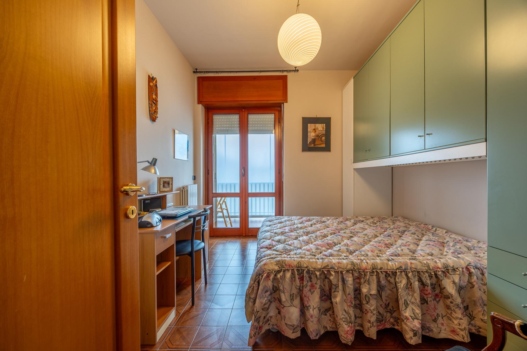 Posto al primo piano e servito da ascensore, l’appartamento accoglie con un ingresso su corridoio che distribuisce con armonia tutti gli ambienti. Il soggiorno si apre ampio e luminoso, valorizzato dalla raffinata portafinestra in vetro cattedrale che conduce al balcone e dona carattere e luce all’intera zona giorno. Sul lato opposto, attraverso un piccolo disimpegno con armadio a muro, pratico e funzionale come dispensa, si raggiunge la cucina, anch’essa collegata a un secondo balcone ideale per i momenti di quotidianità all’aria aperta.