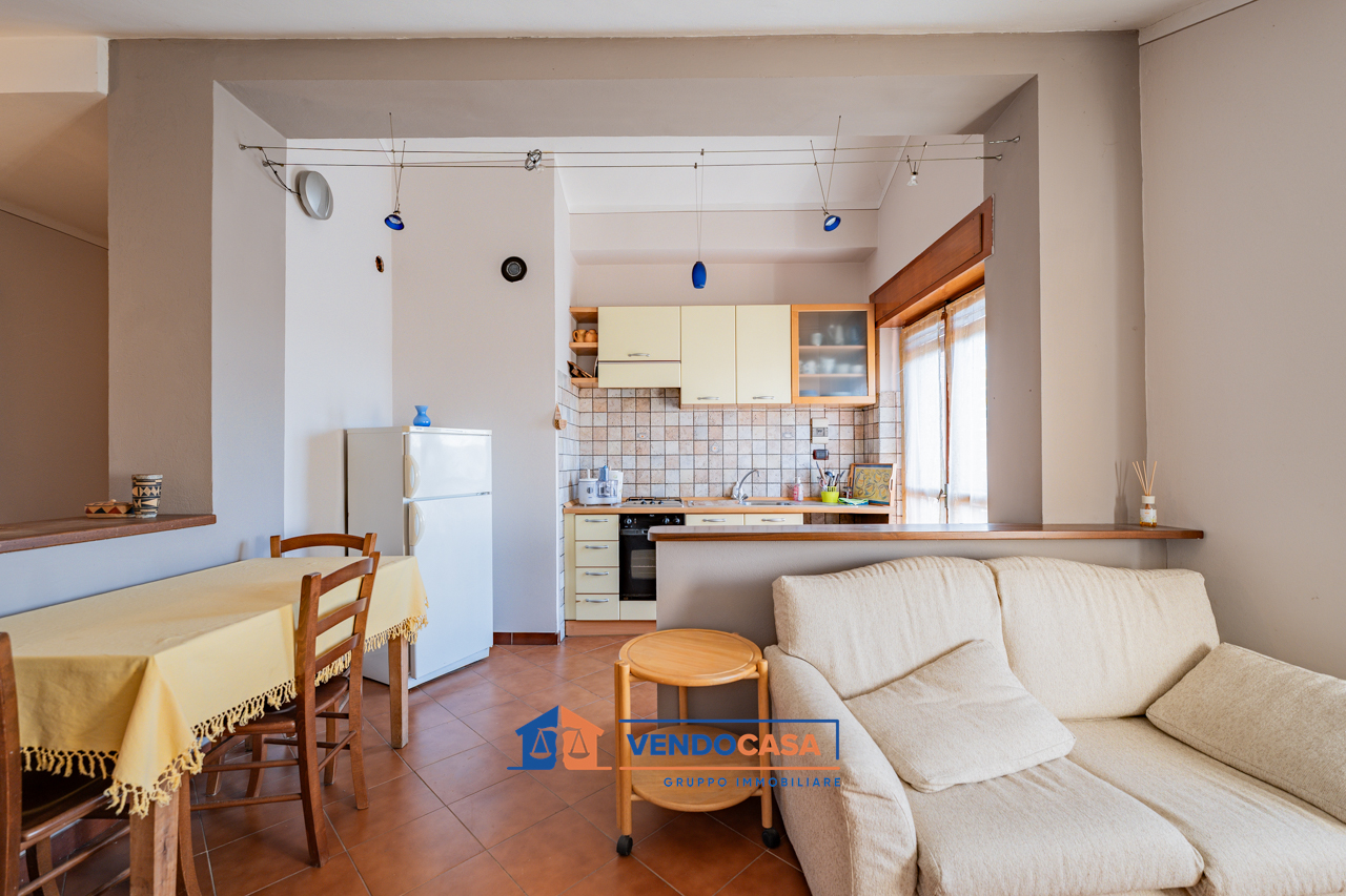 – Piano rialzato con ingresso su corridoio, luminoso cucinino con sala da pranzo, soggiorno, due camere e bagno;