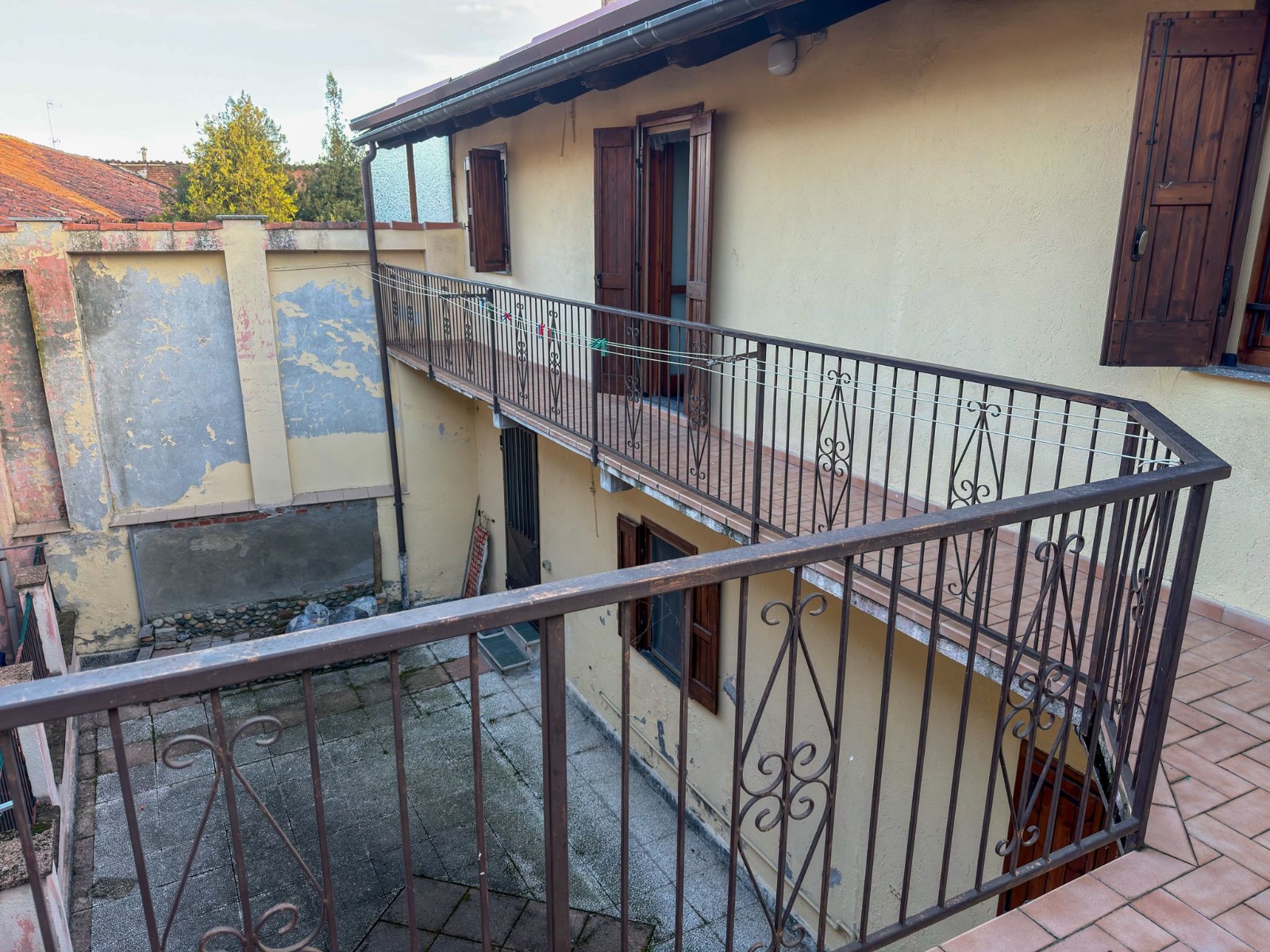 La scala interna accompagna al primo piano, dove si trovano due camere da letto matrimoniali e altre due camere di ulteriori dimensioni, perfette per ospiti, studi personali o cabina armadio. Sul piano è presente anche un secondo bagno finestrato. Da qui si accede a un ampio balcone sul retro, mentre un secondo balcone è collocato sul lato opposto dell’edificio. All’esterno completa la proprietà uno spazio privato comodo e riservato, ideale per momenti di relax all’aria aperta o per attività familiari.